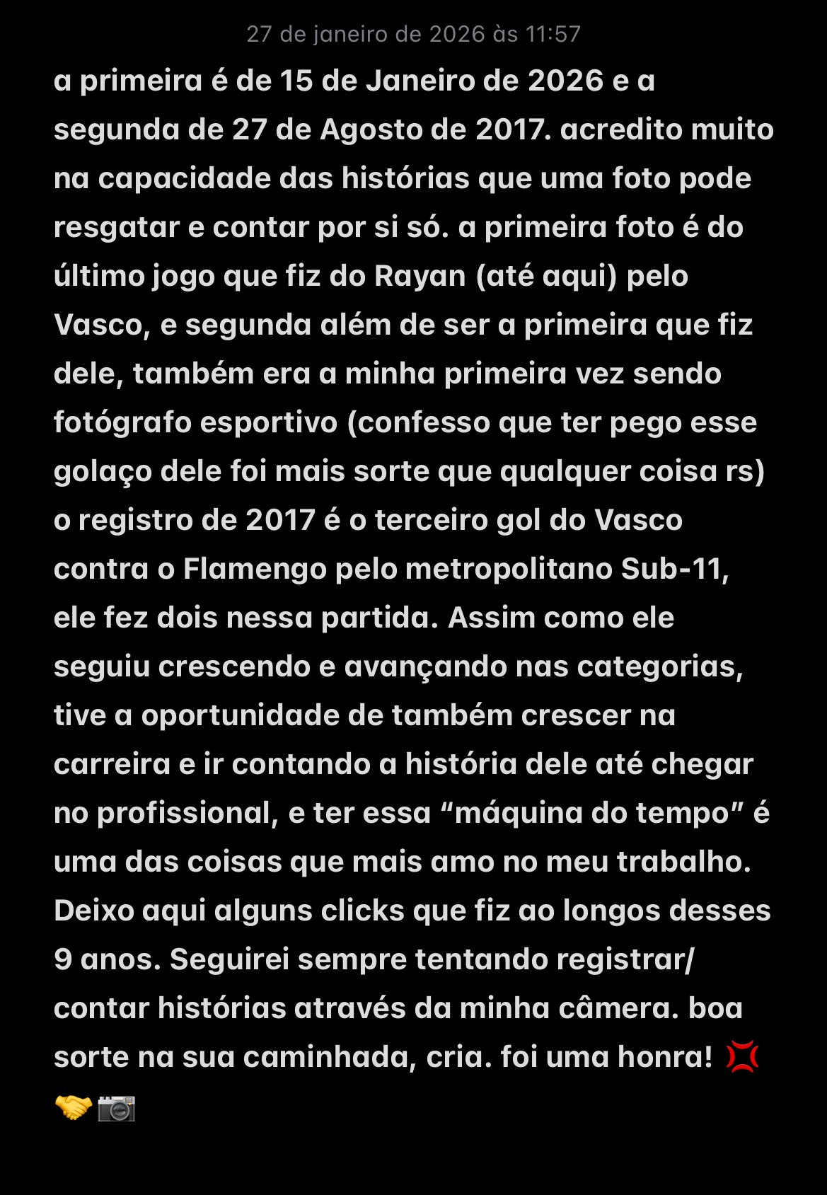 Fotógrafo que registrou clicks de Rayan desde a base se despede do atacante