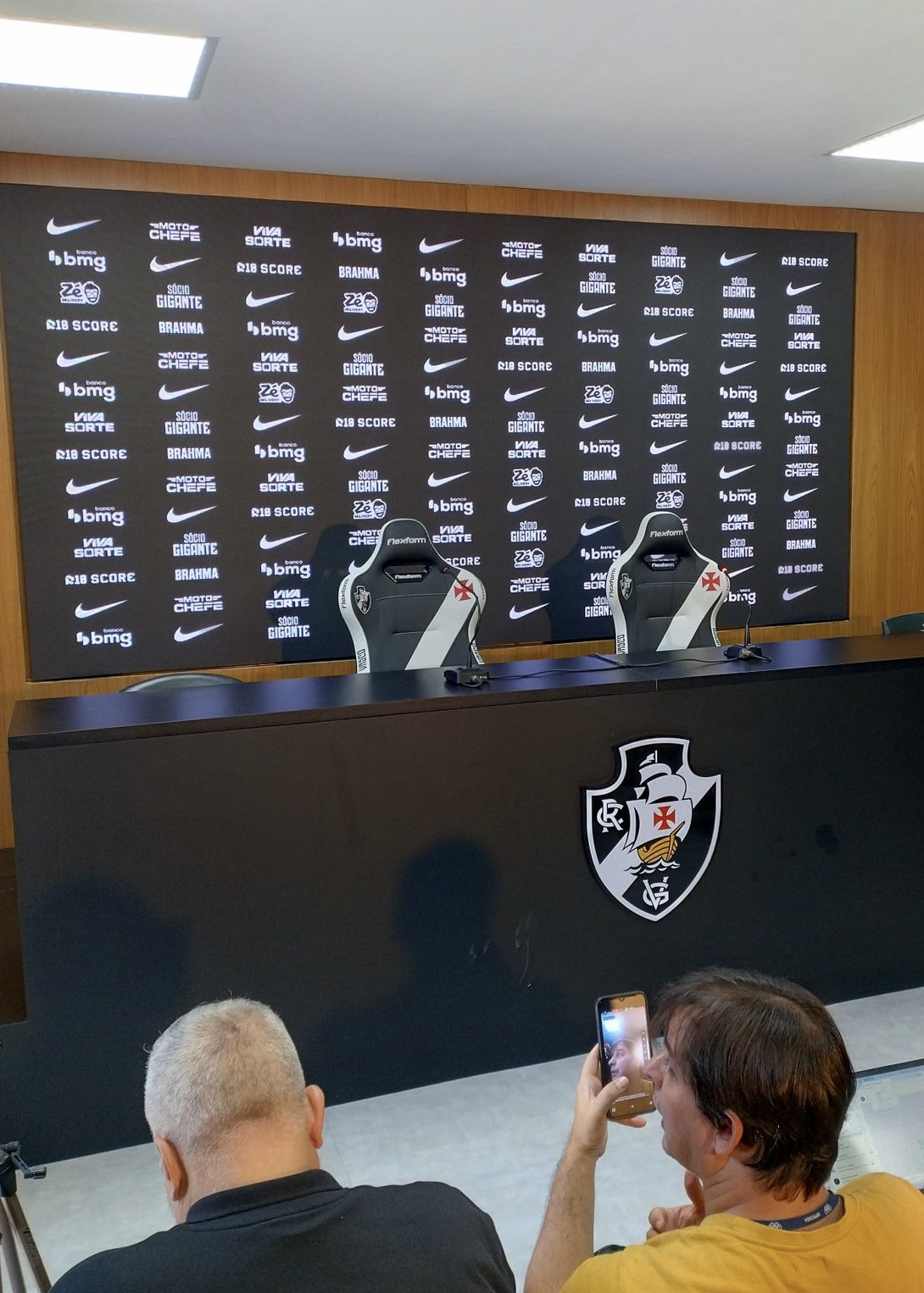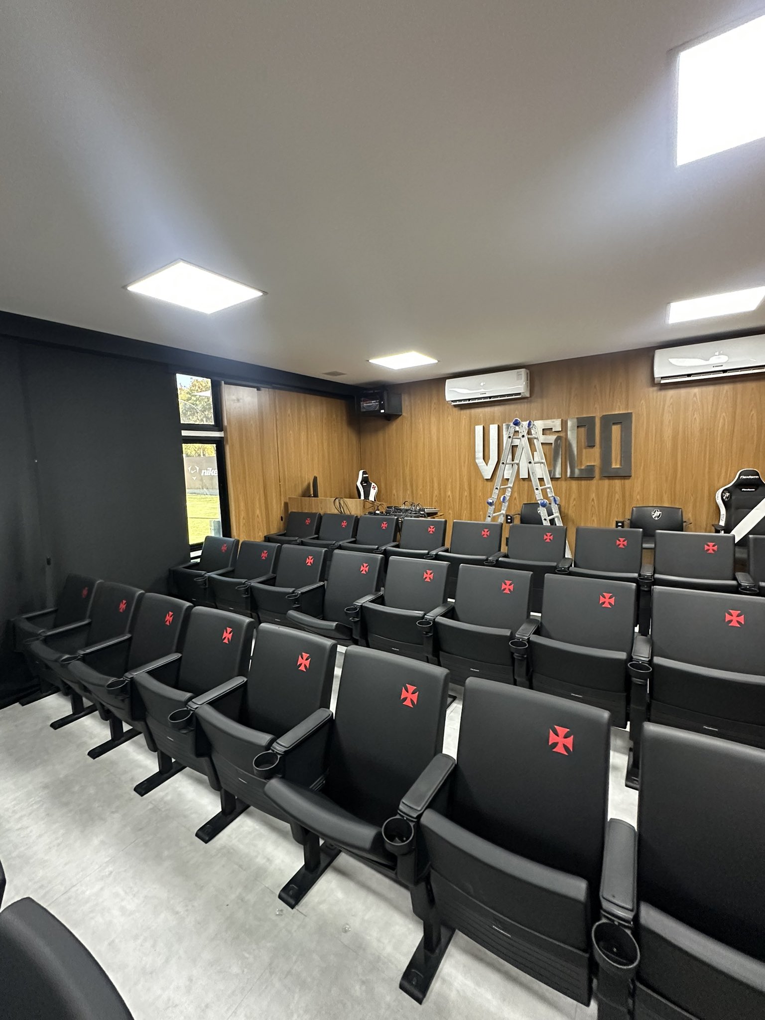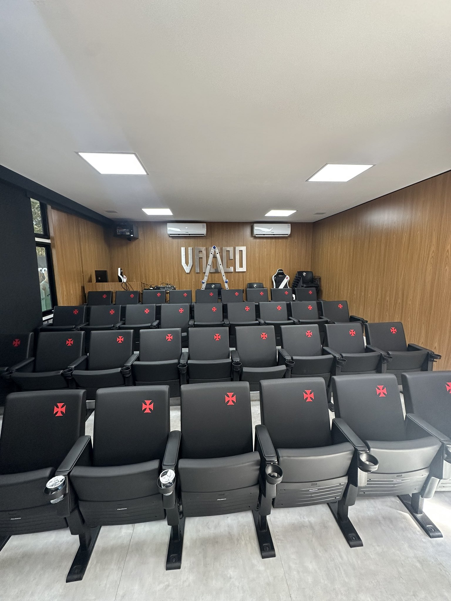 Detalhes da nova sala de imprensa/sala de vídeo do Vasco da Gama.