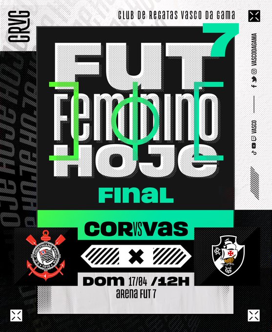 Nossas Meninas da Colina entram em campo pela final do Torneio Rio-São Paulo de Fut7, contra o Corinthians, na Arena Fut7, em Guaratiba. O jogo será transmitido pelo Sportv e pela F7 TV Play, a partir de 11:30.