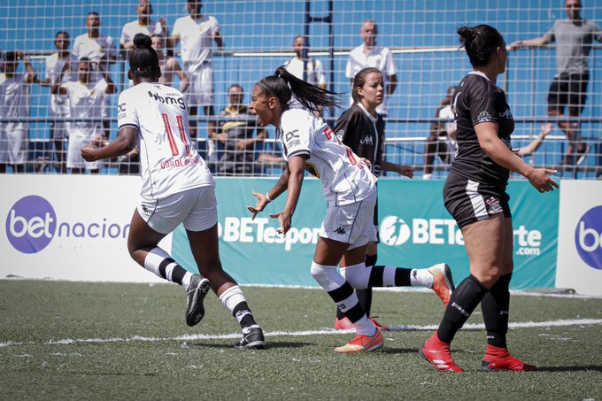 Vasco vai vencendo o Corinthians por 2 a 0 na final do Torneio Rio-São Paulo de Fut7. Gols marcados por Bia Batista e Lidy.
