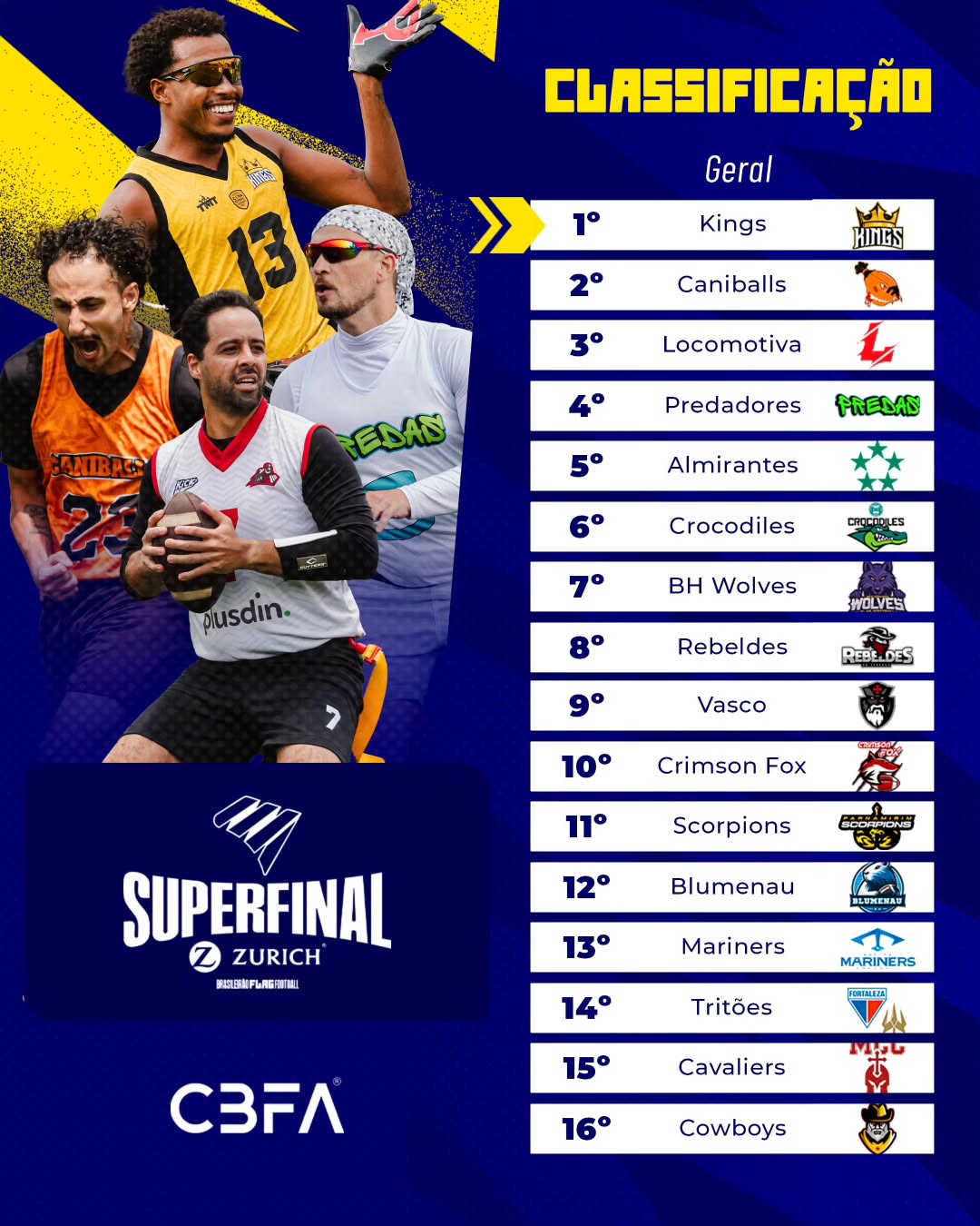 Confira como ficou a classificação geral da Superfinal masculina de Flag Football @brasileiraoflag oferecimento @zurichnobrasil