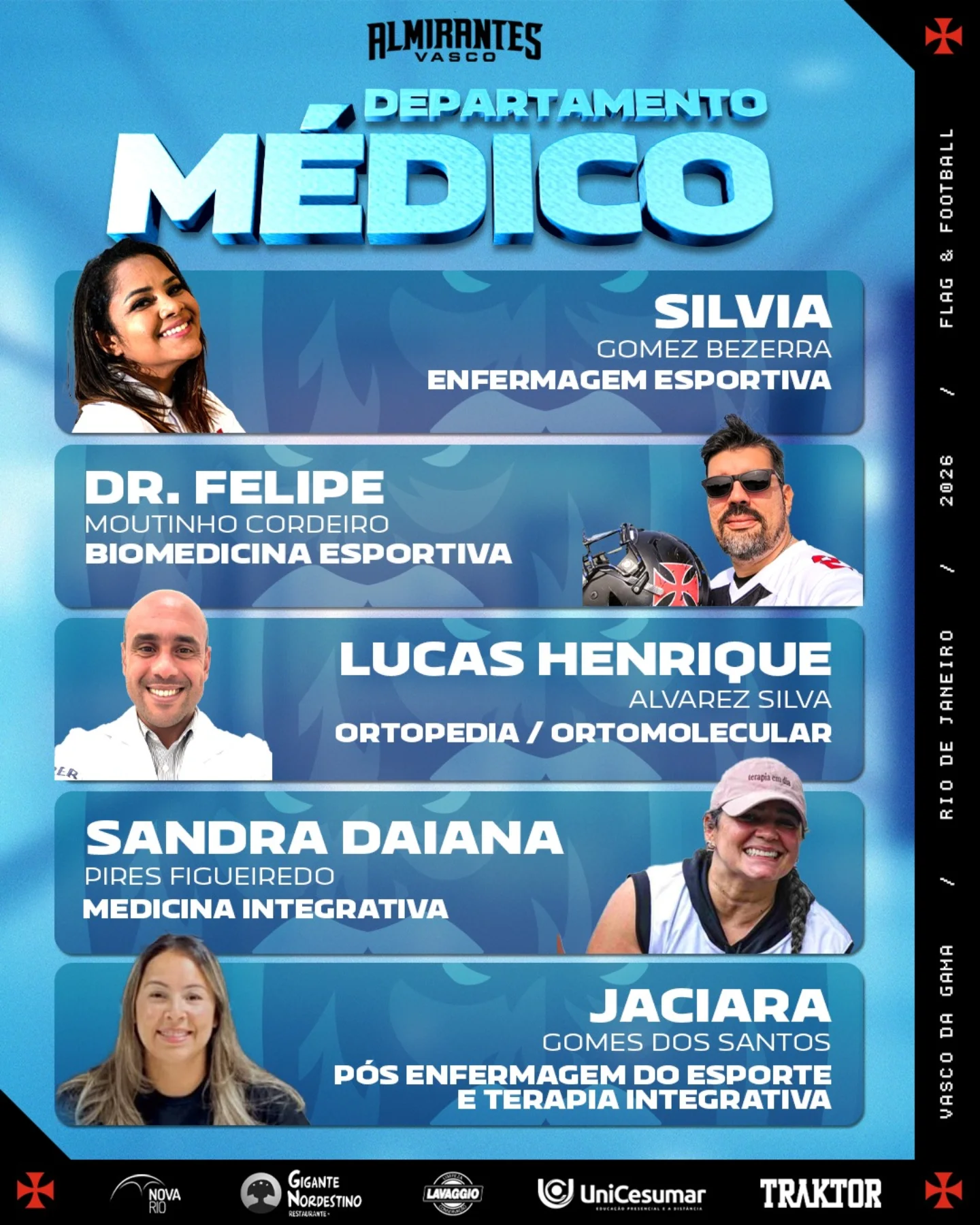 Apresentamos o Departamento Médico, responsável pelo acompanhamento, prevenção e recuperação dos atletas ao longo da temporada.
