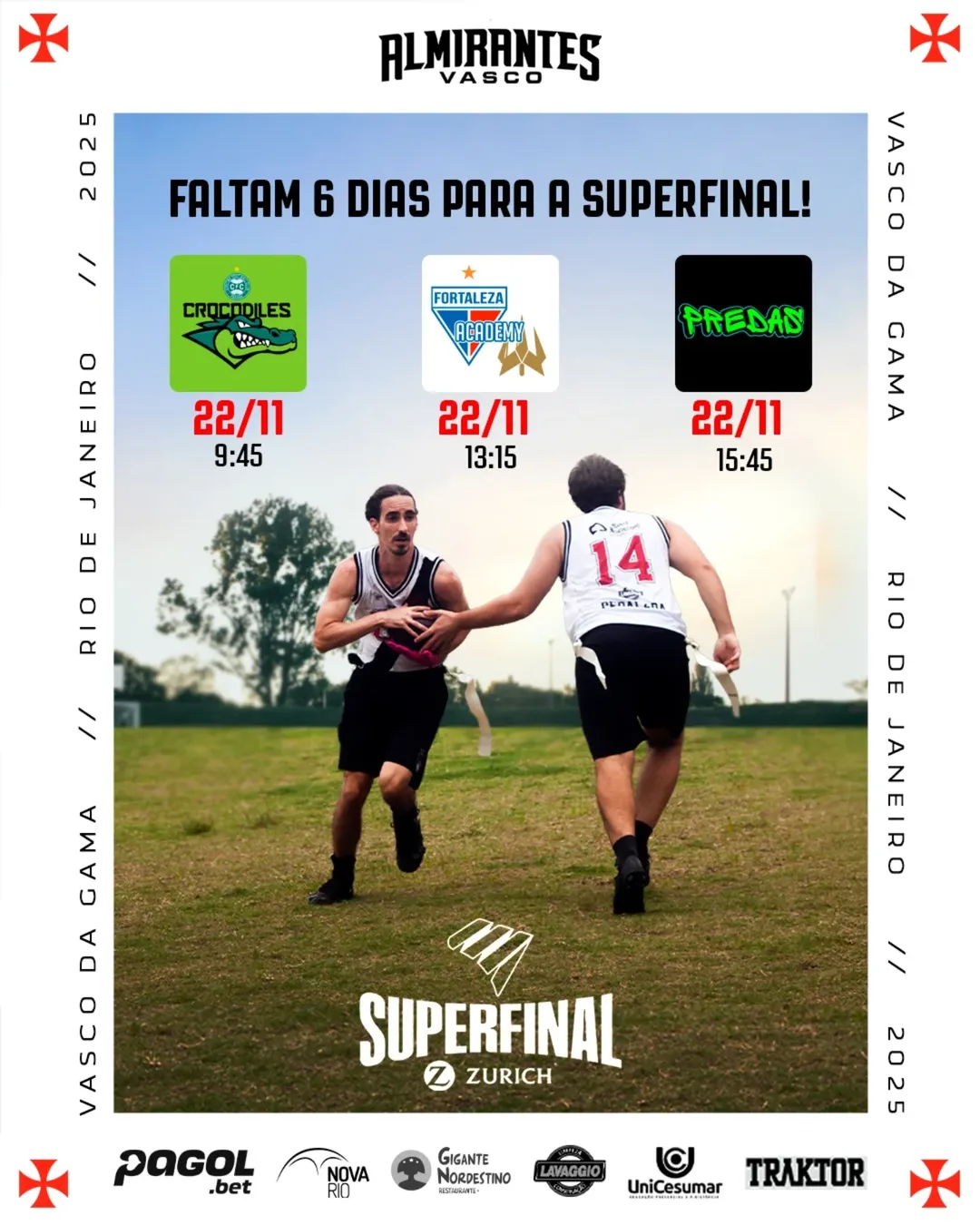 Os atletas de Flag Football do Vasco disputam, nos dias 22 e 23 de novembro, a SuperFinal em São Paulo em busca de mais um título.