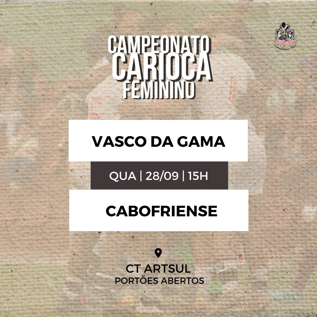 Vasco volta a campo para a reta final da primeira fase do Campeonato Carioca Feminino amanhã, contra a Cabofriense, no CT Artsul, às 15h. O jogo não terá transmissão, porém os portões do CT estarão abertos!