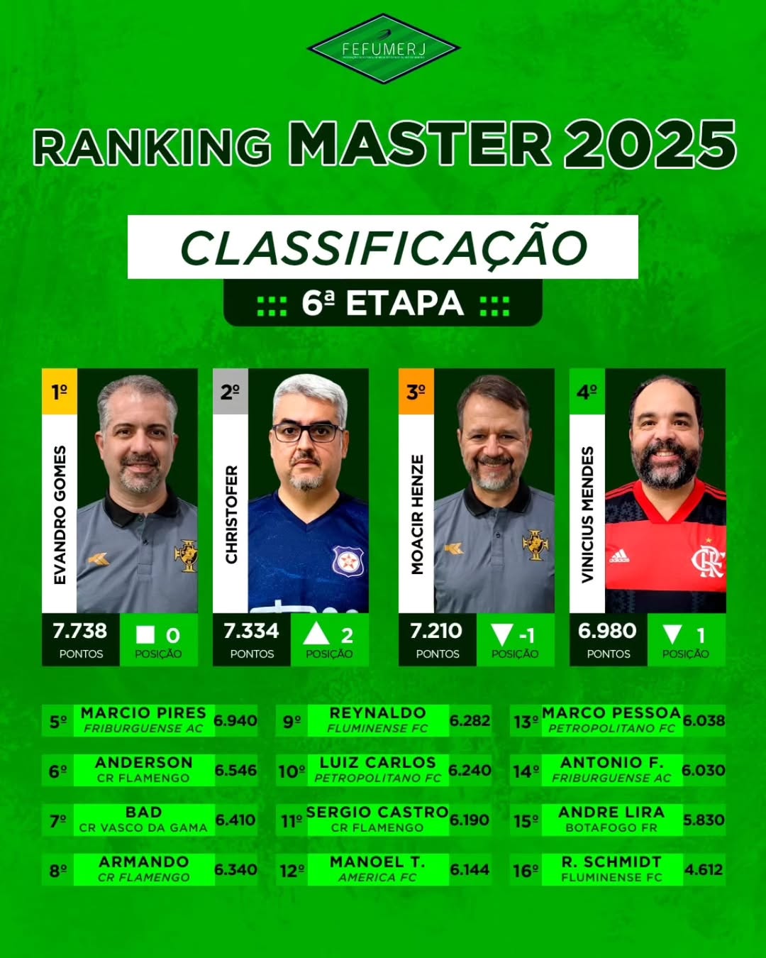 A diretoria da Regra 12 Toques da FEFUMERJ divulgou o atual Ranking da categoria master.