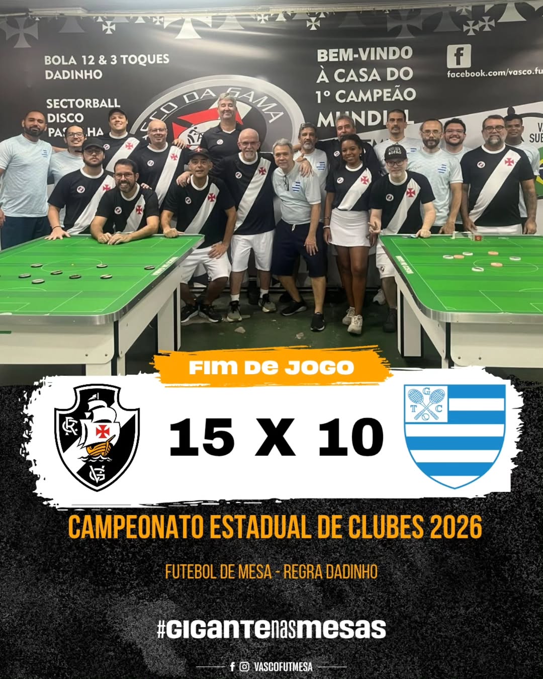 O futmesa vascaíno manteve o embalo no Campeonato Estadual por Equipes da Regra Dadinho ao conquistar sua segunda vitória consecutiva na competição organizada pela FEFUMERJ - Federação de Futebol de Mesa do Estado do Rio de Janeiro.