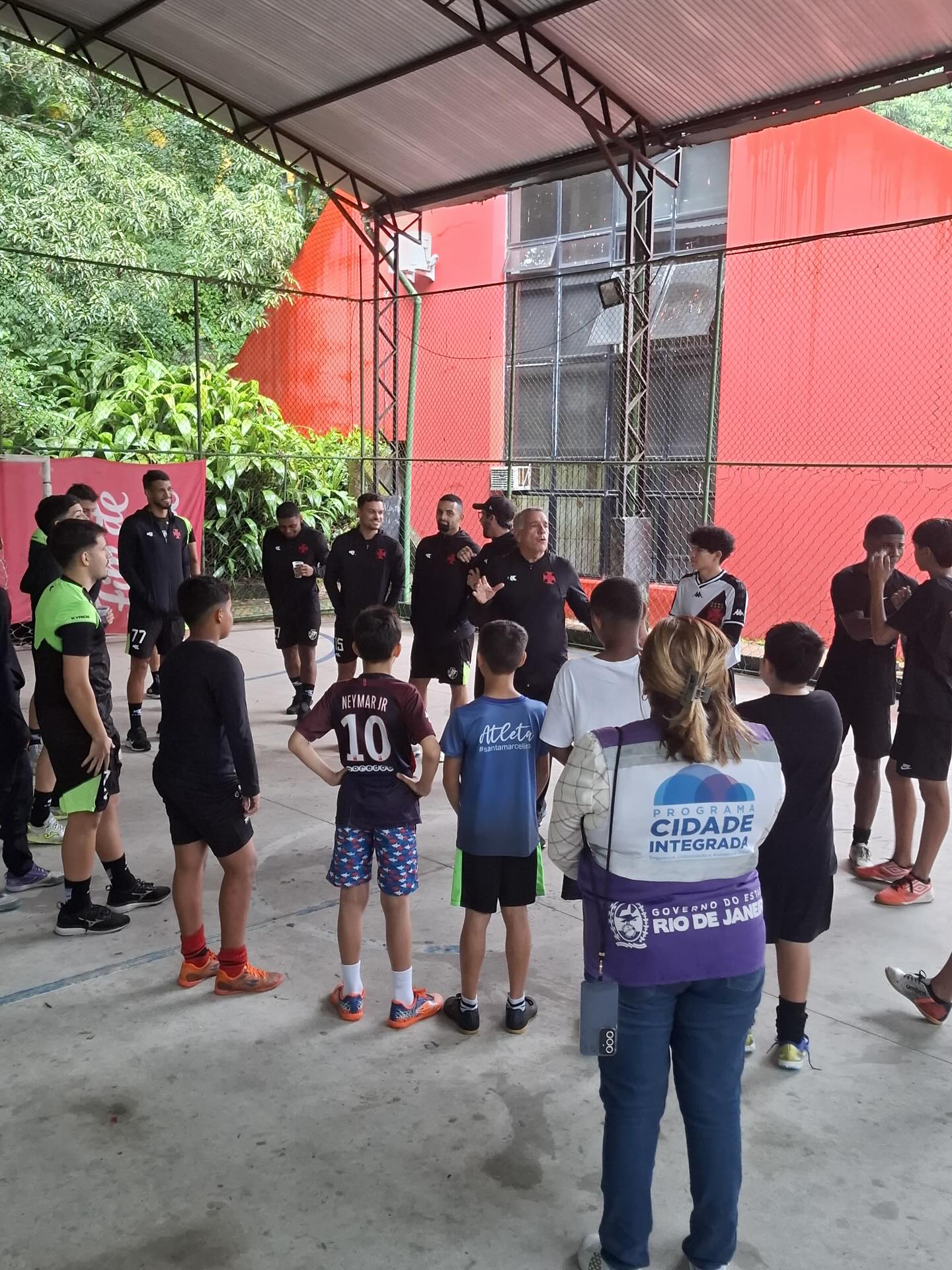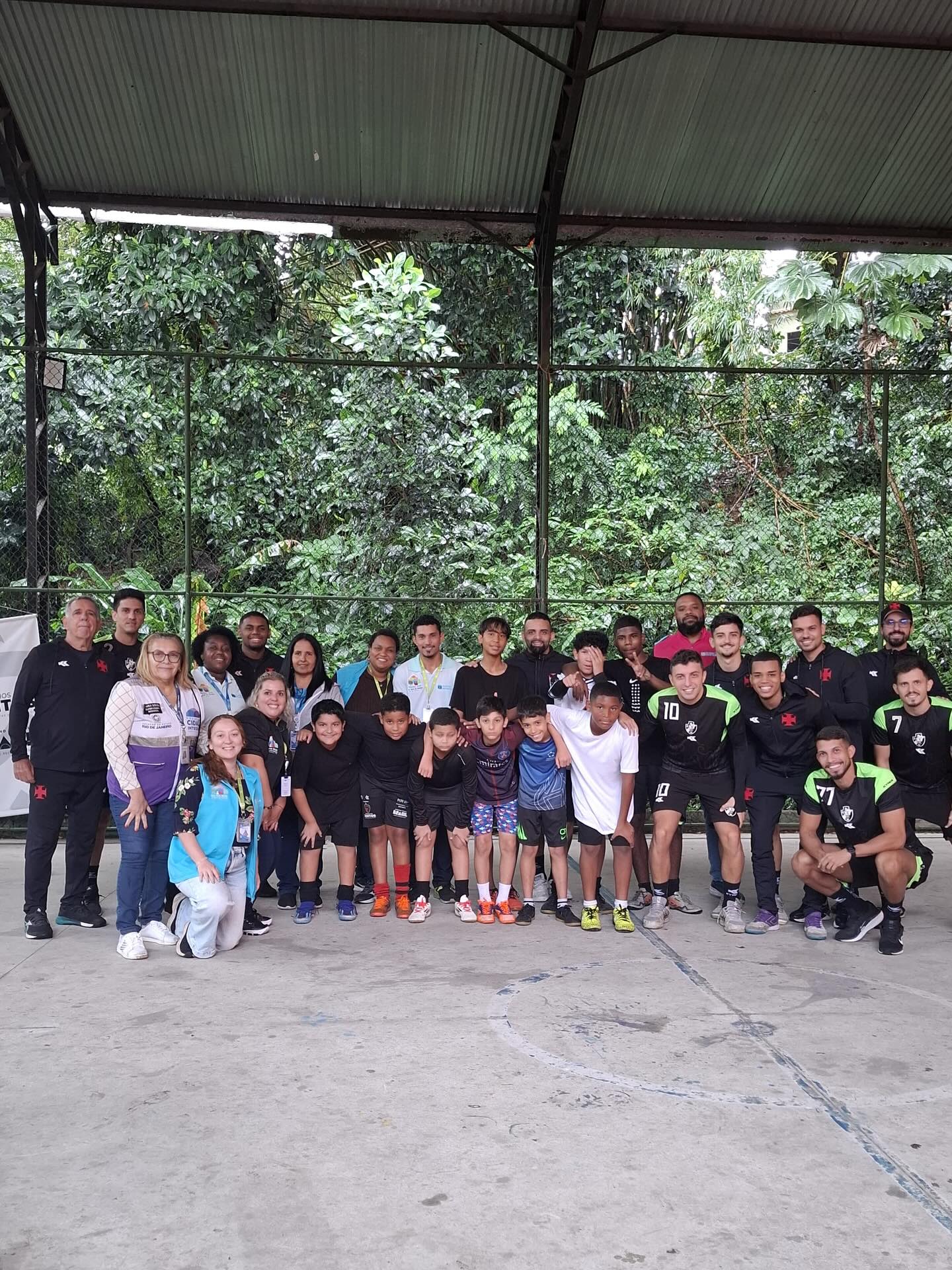 As crianças do Morro do Banco, no Corredor Itanhangá, e da Aldeias Infantis SOS viveram uma tarde especial com a visita do time de futsal do Vasco da Gama.