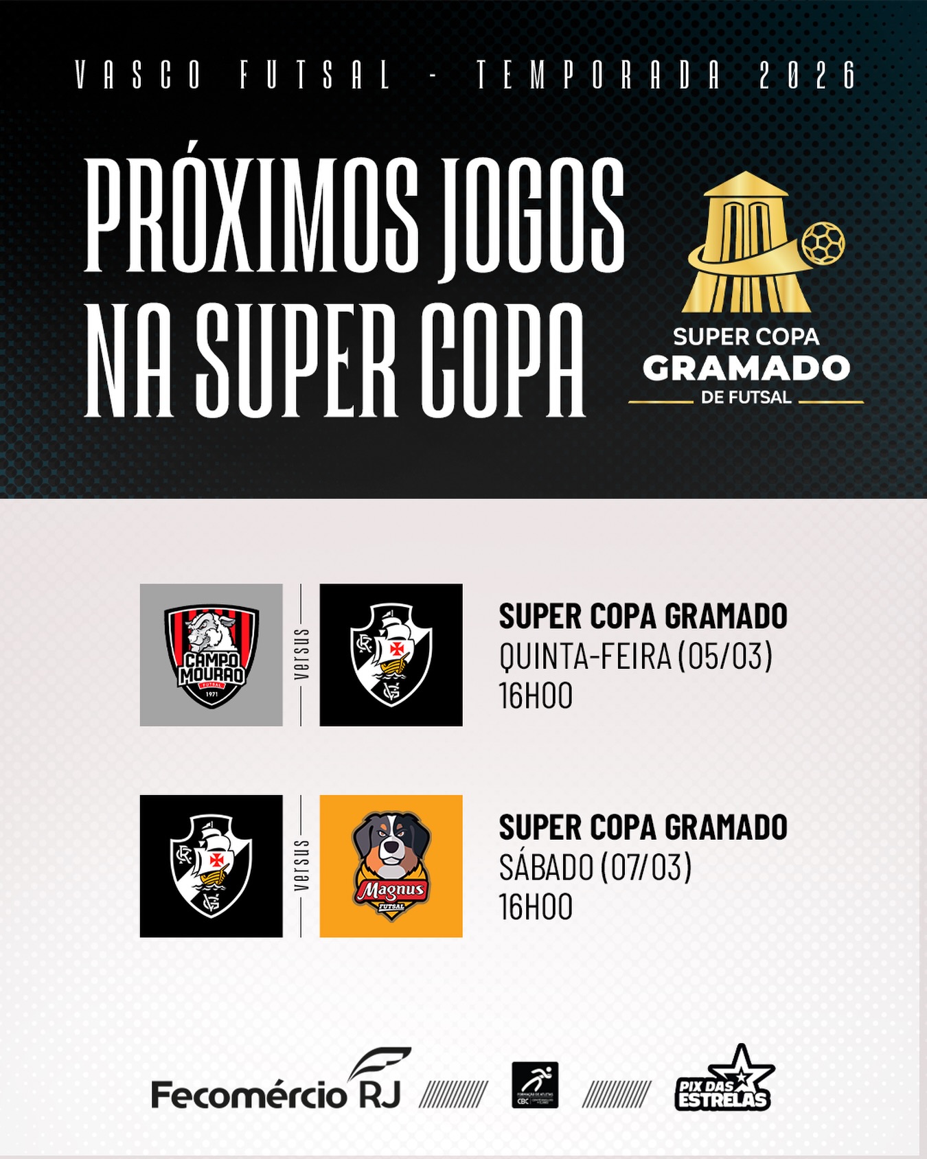 Confira os próximos compromissos do Vasco na Supercopa Gramado 2026.