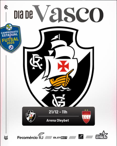 O Vasco da Gama recebe o Correias na Arena Oleybet, na Rua Bariri, para a grande decisão do Campeonato Estadual 2025. A partida começa às 11h, e contamos com a sua torcida!
