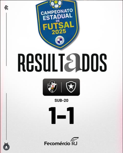 Pelo Estadual de futsal sub-20, Vasco e Botafogo ficam no 1x1, na inauguração da Arena Oleybet, em Olaria.