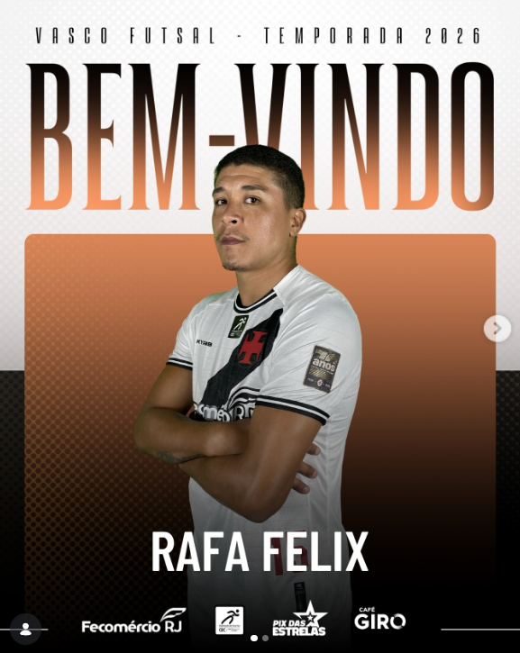 O Vasco Futsal anuncia a chegada de Rafa Felix, um nome com bagagem global e experiência em diferentes cenários do futsal mundial.