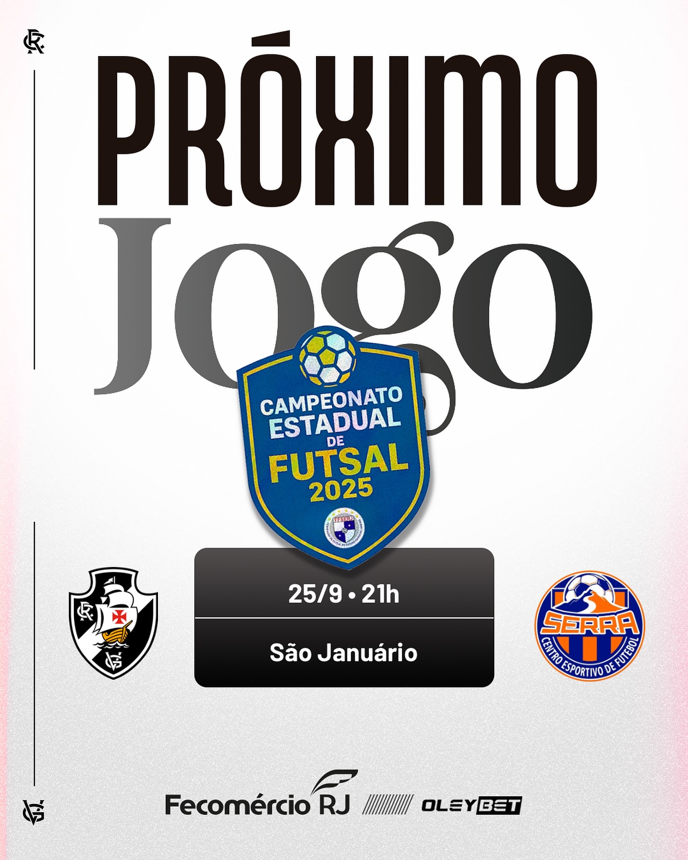 A próxima partida do Gigante é nesta quinta-feira (25), às 21h, em São Januário! O Vasco recebe o Serra pela 3ª rodada do Estadual de futsal. 💪