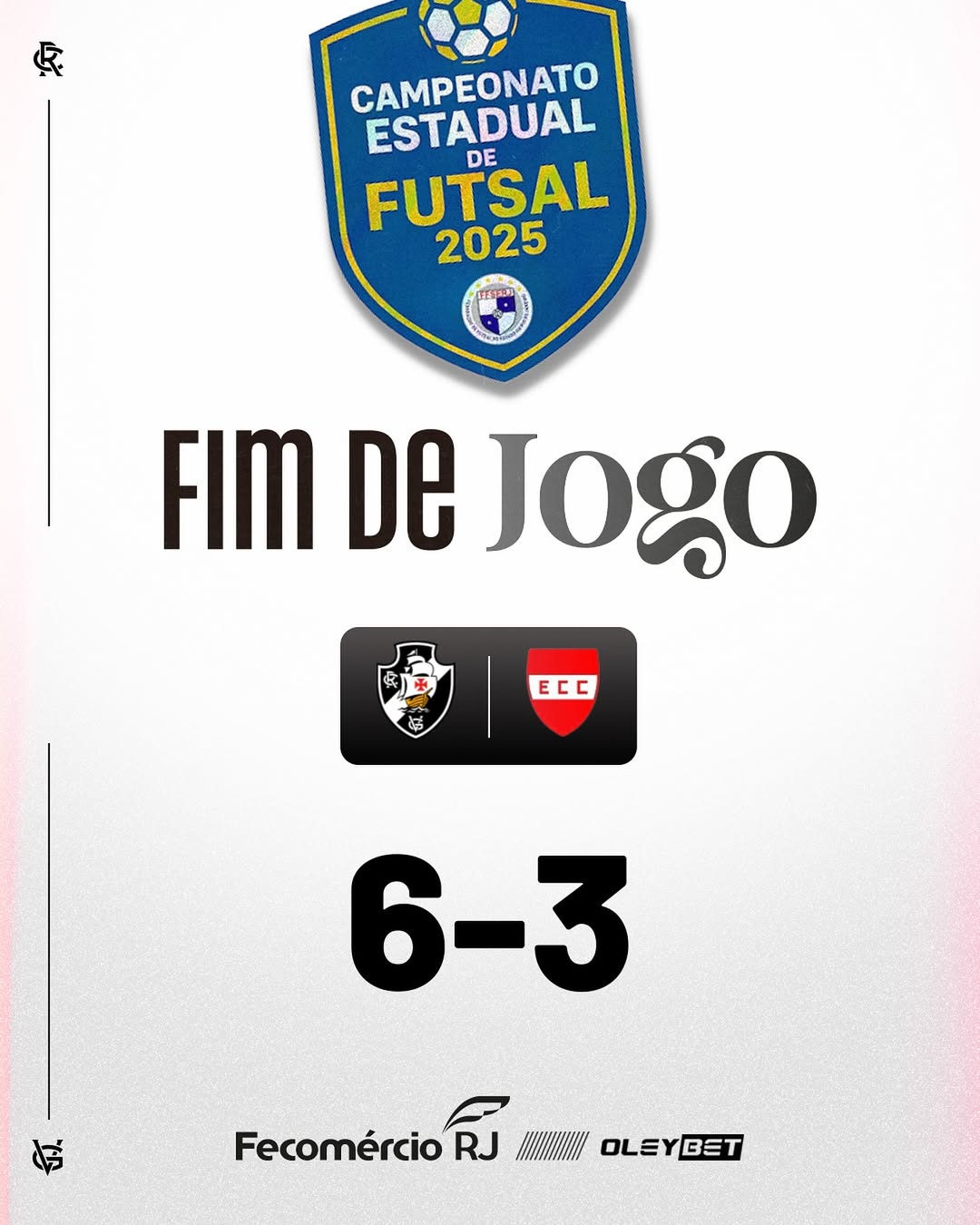 VENCE O GIGANTE! 💢🔥 Pela penúltima rodada da fase de grupos, o Vasco vence o Corrêas por 6x3, na Arena Oleybet. 🔥 ⚽️ Gols de Raul Rocha, Daniel Leal, Trevenzoli (2), João Loureiro e David Reis.
