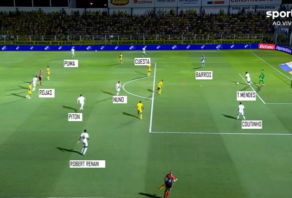 - Piton por dentro como volante junto de Nuno, alinhados. Rojas também voltando.