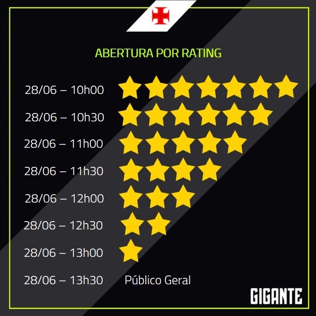 ⭐ Confira o horário de abertura de vendas dos ingressos de acordo com seu rating (número de estrelas).