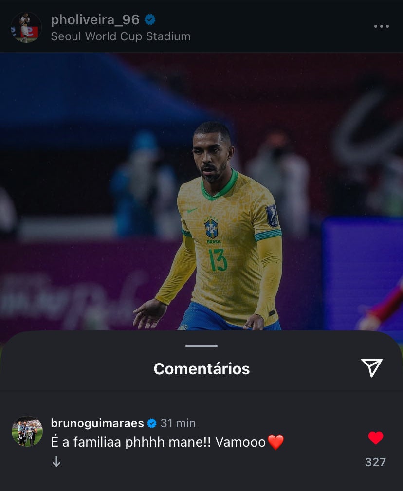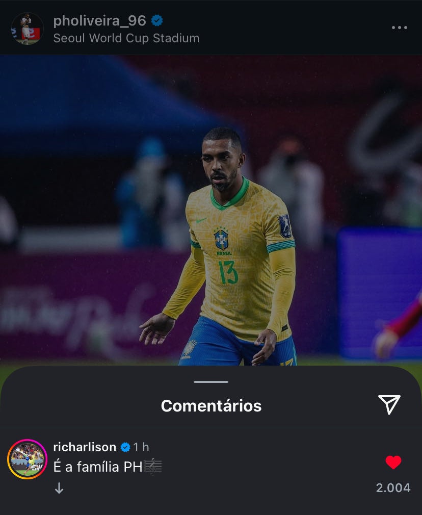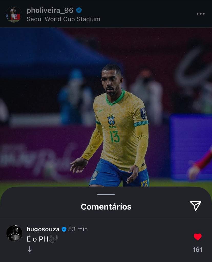 Jogadores comentam em fotos de PH após estreia pela Seleção