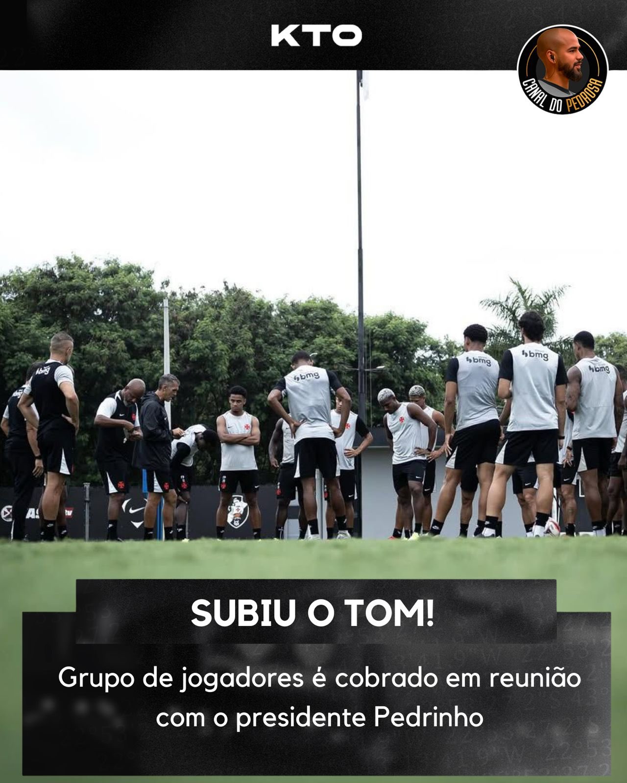 A manhã de véspera da semifinal do Campeonato Carioca contra o Fluminense, no CT Moacyr Barbosa, foi de uma reunião intensa, com um tom “muito duro”, entre o presidente Pedrinho e o grupo de jogadores do Vasco, segundo apurou exclusivamente o #CanaldoPedrosa .