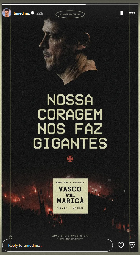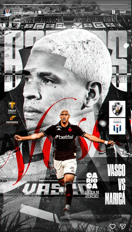Elenco publica imagens destacando o duelo contra o Maricá, às 21h30, nesta quinta (15). O jogo marca a estreia do Vasco no Carioca 2026, em São Januário.