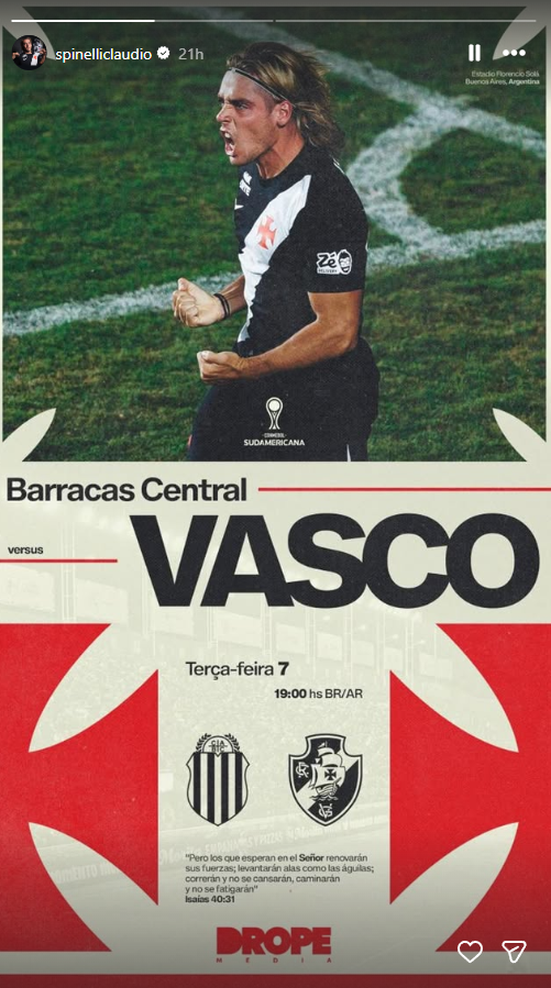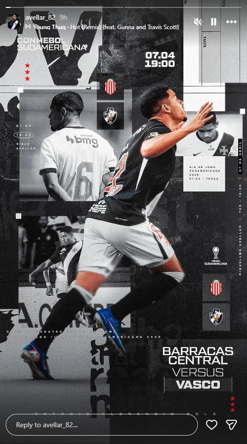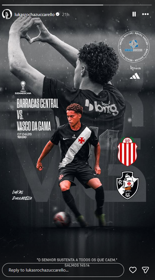 Jogadores do Vasco postam fotos destacando o duelo contra o Barracas Central, na estreia da Sul-Americana 2026, nesta terça (07), às 19h00, no Estádio Florencio Sola, na Argentina.
