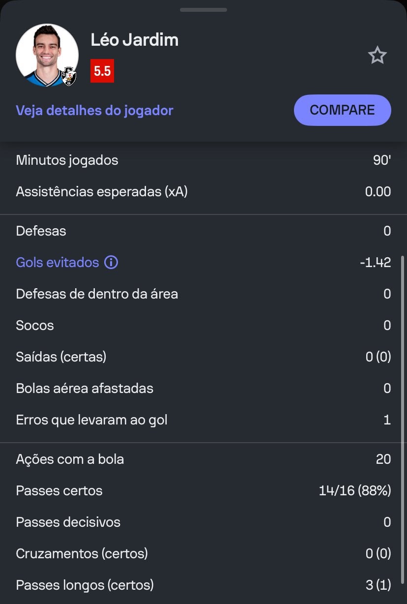 Léo Jardim teve a pior nota Sofascore contra o Vitória; números