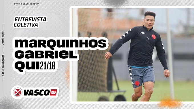 Nesta quinta-feira teremos a entrevista coletiva com o meia Marquinhos Gabriel na VascoTV. 💢📺