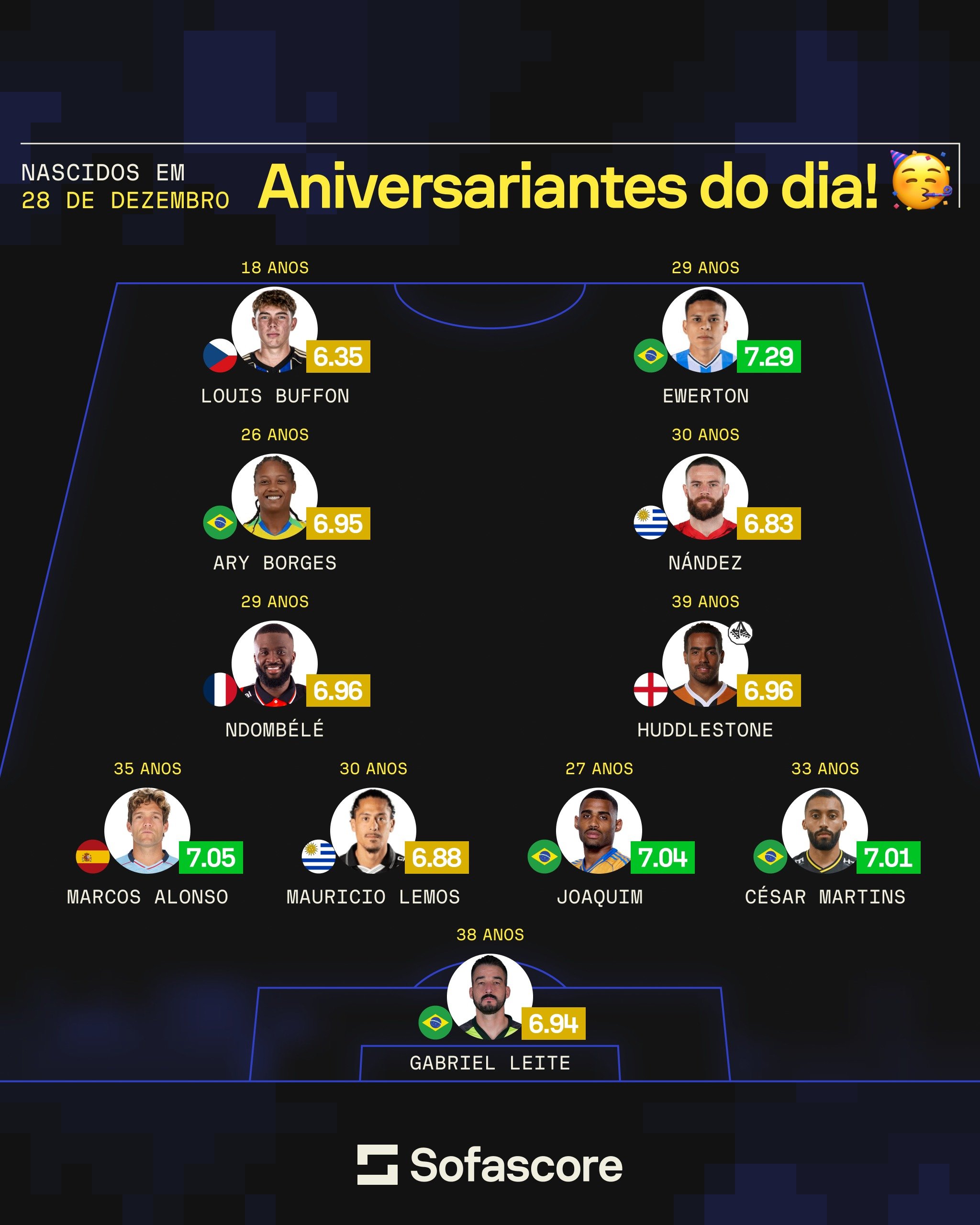Montamos uma seleção de jogadores que fazem aniversário neste 28 de dezembro. 🎂⚽️