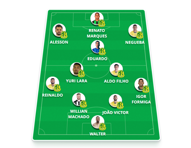 Provável escalação: Walter; Igor Formiga, João Victor, Willian Machado e Reinaldo; Yuri Lara, Aldo Filho e Eduardo; Negueba, Alesson e Renato Marques.