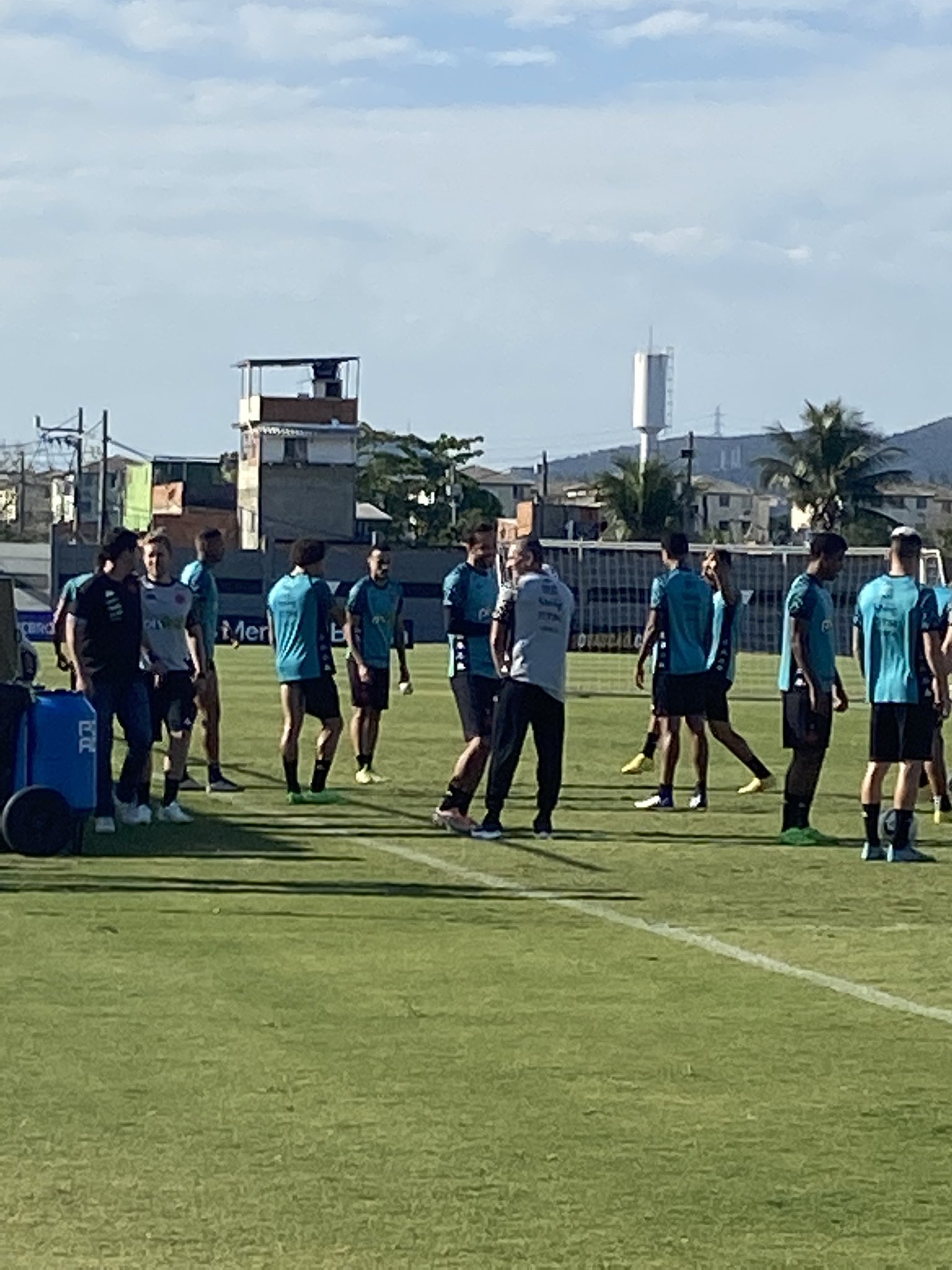Nenê e Jorginho conversam bastante antes do início do treino desta tarde