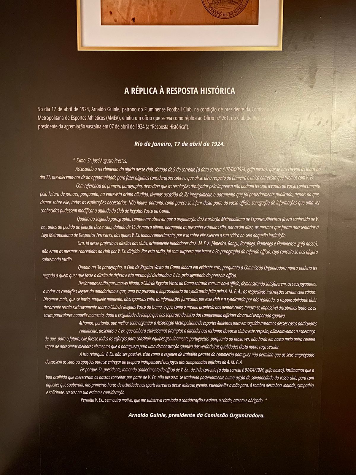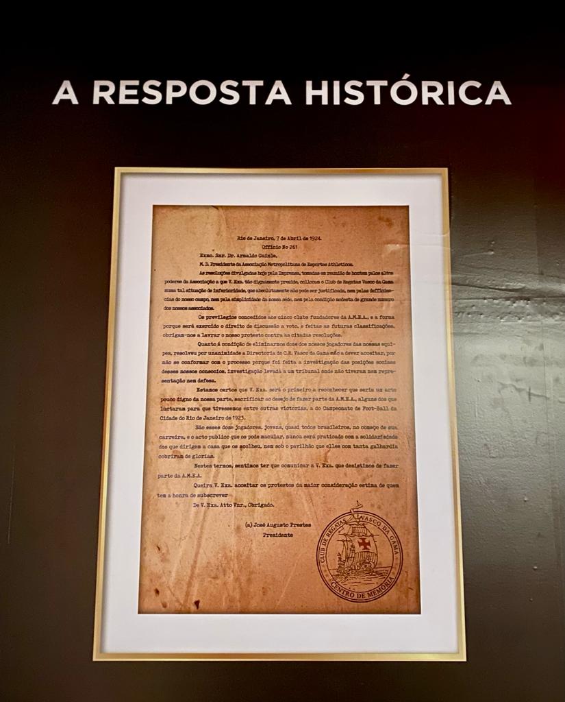 A Resposta Histórica atestou a posição do Vasco na luta contra um futebol aristocrático.