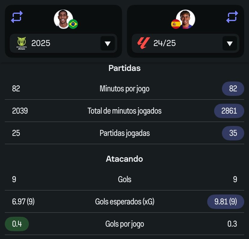 Números comparam a temporada de Rayan com a de Lamine Yamal