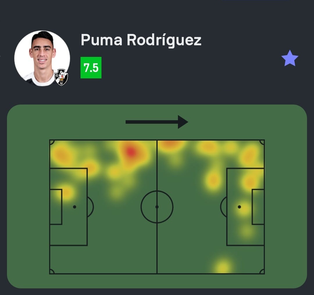 Puma Rodríguez acertou todos os passes que tentou em Vasco 2-1 Fluminense!