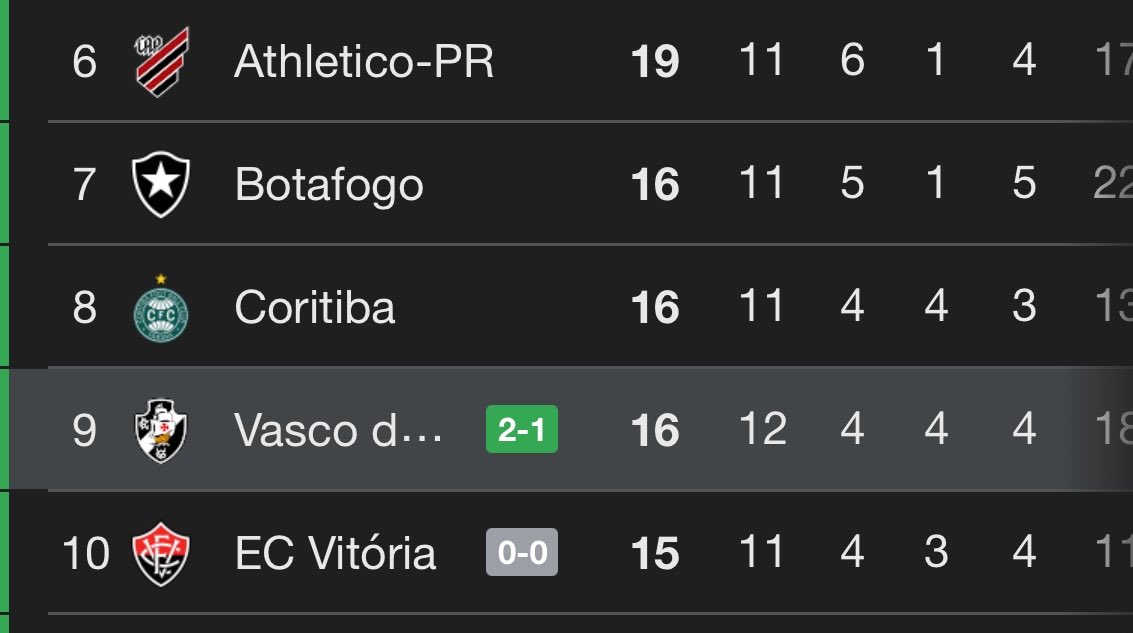 Números iguais do Vasco no Brasileirão até a rodada 12 chama atenção