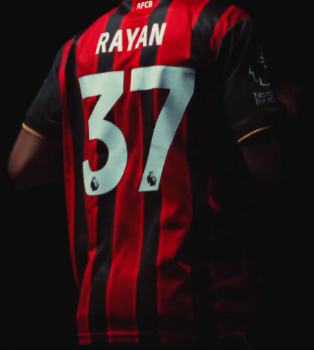 Rayan irá usar o número 37 no Bournemouth. O vídeo foi publicado nas redes sociais do clube inglês.