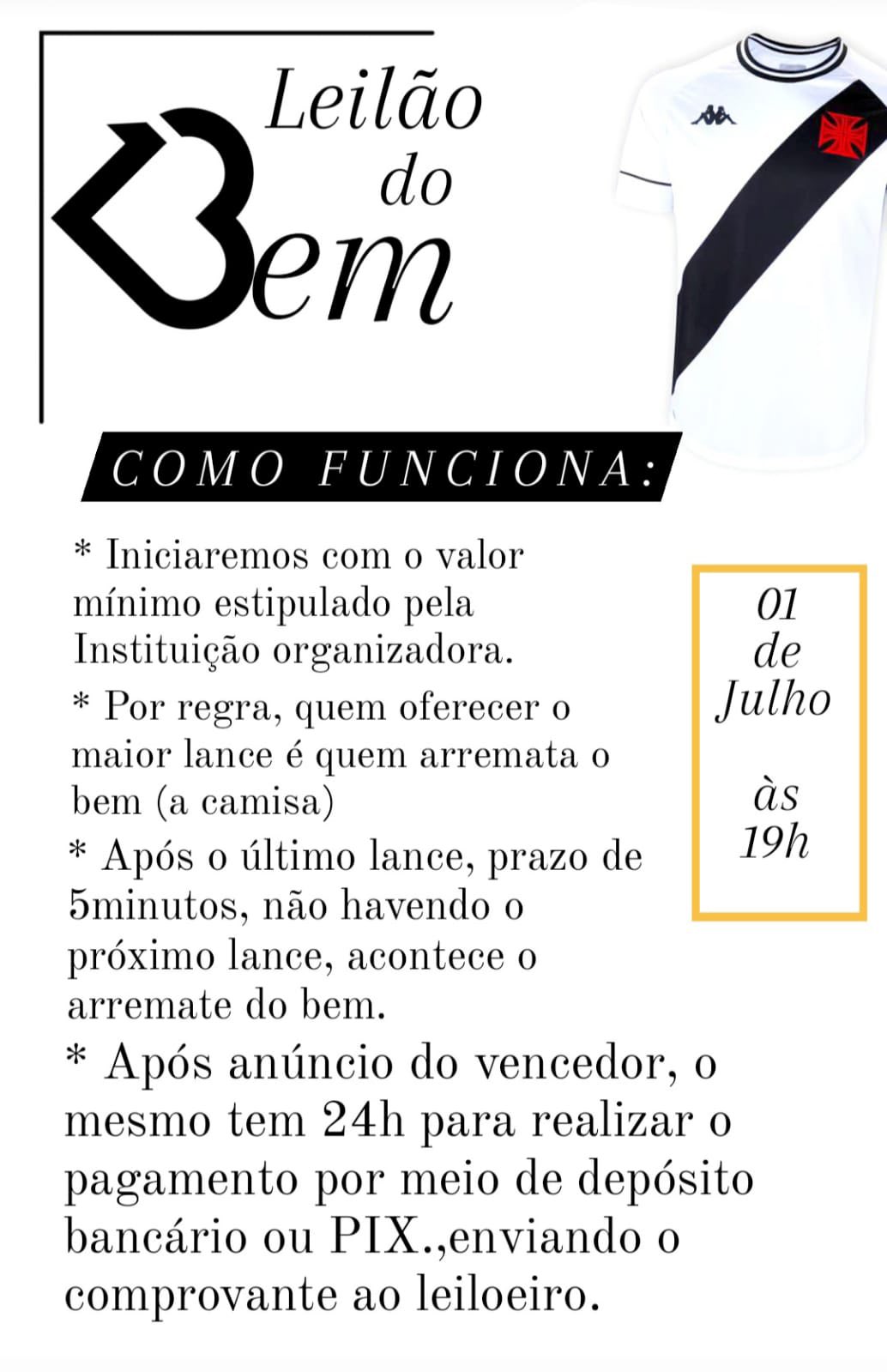 Nesta noite, o Oratório da Divina Providencia, no Recife, vai leiloar uma camisa autografada pelos jogadores do Vasco. O leilão acontecerá no Instagram @oratorio_ong. A renda será revertida para ajudar as vítimas das chuvas na cidade. Veja como funciona: