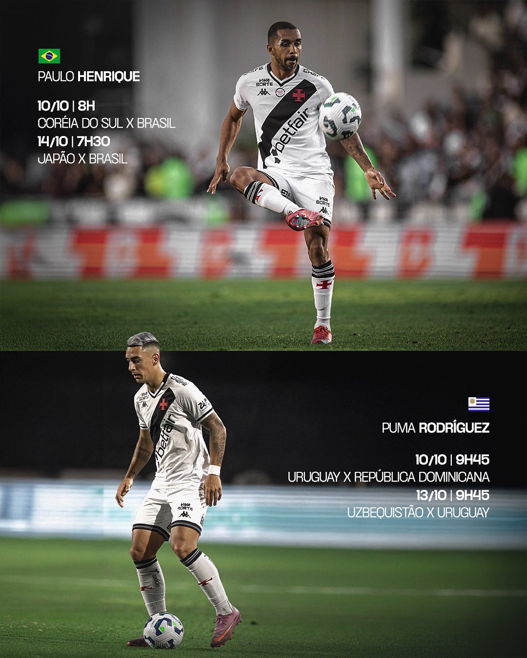O calendário dos representantes Vascaínos na Data Fifa! 🇧🇷🇺🇾