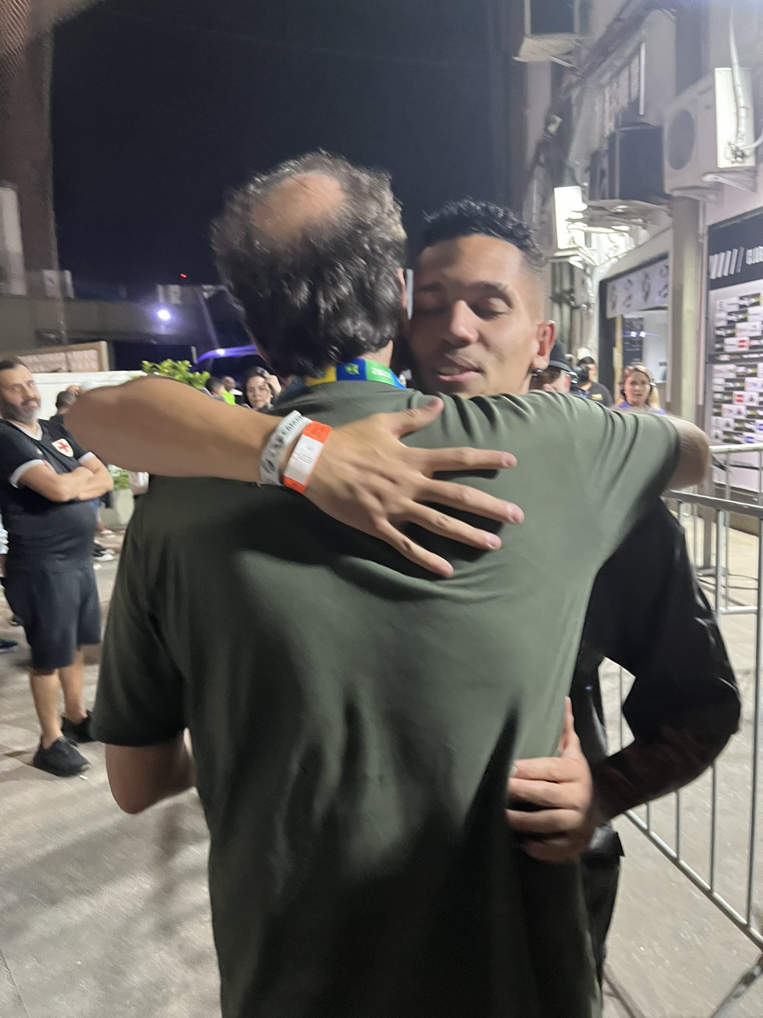 Paulinho tira fotos com torcedores e recebe o abraço do VP geral Carlos Roberto Osório. #gevas