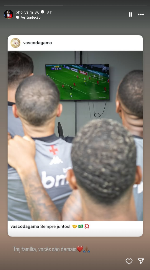 Paulo Henrique agradeceu em sua rede social após o perfil do Vasco postar foto dos jogadores acompanhando a sua estreia na Seleção Brasileira, que disputou um amistoso contra a Coreia do Sul: