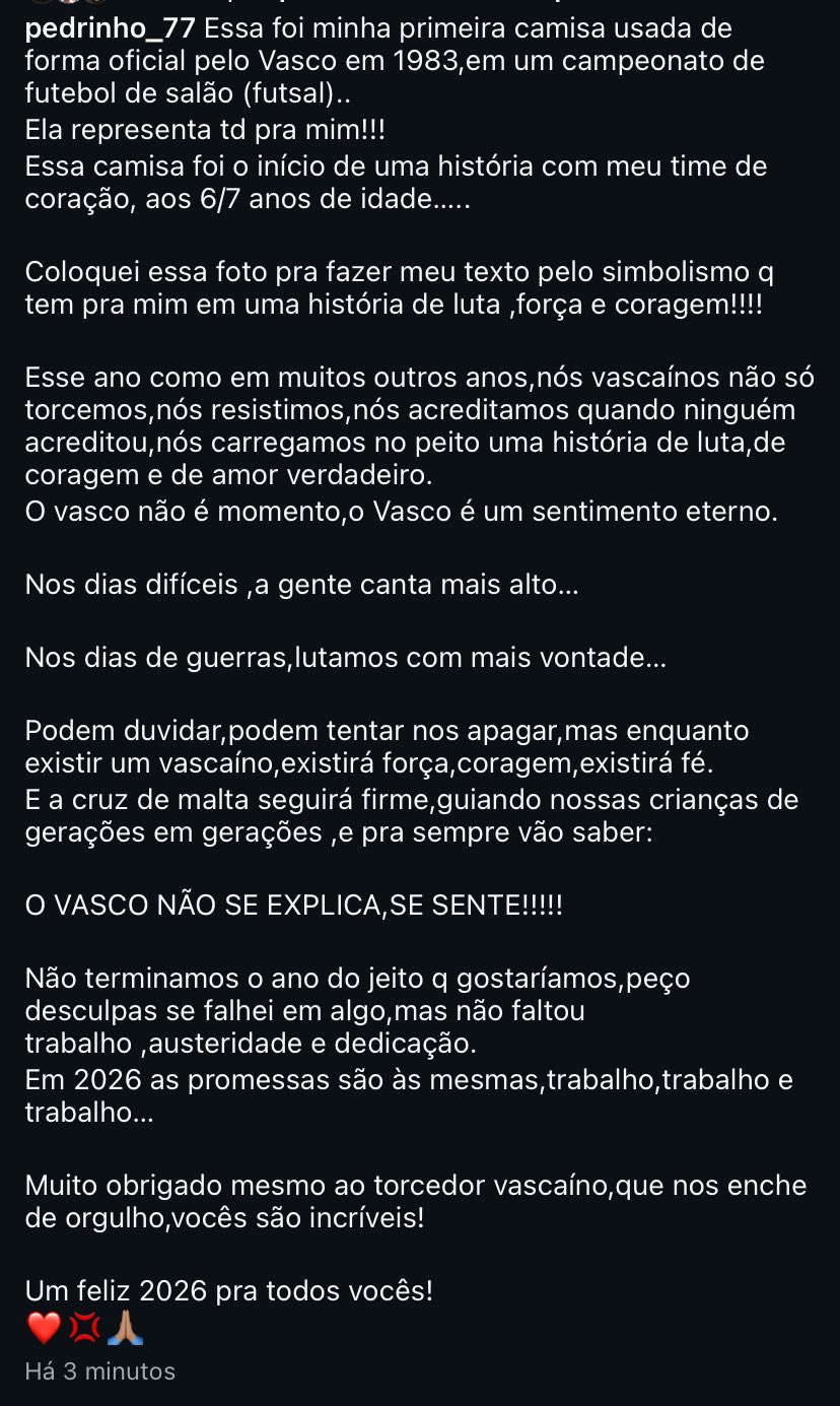 🚨💢 Postagem do presidente Pedrinho falando sobre o ano de 2025.