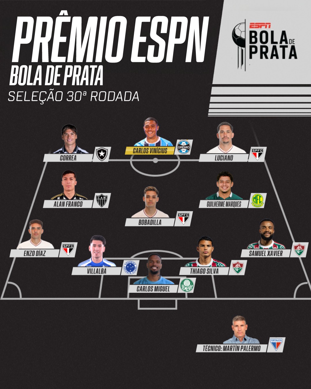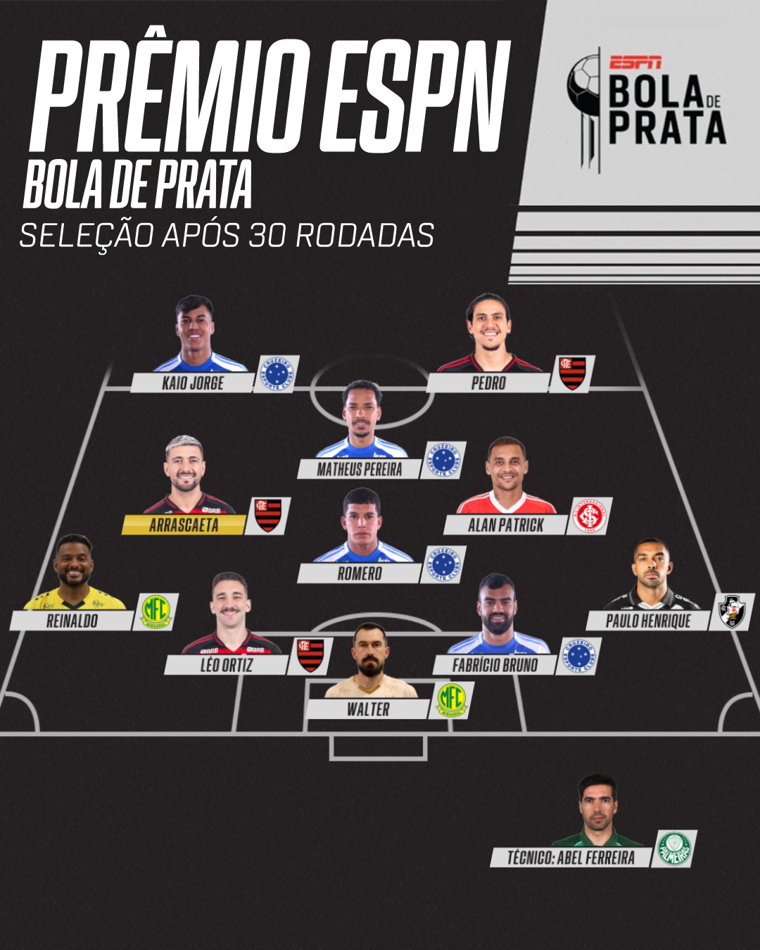 TIME DE RESPEITO 😤🔥 Assim ficou a seleção da 30ª rodada do Brasileirão e ao lado o time ideal após 30 rodadas no Prêmio ESPN Bola de Prata.