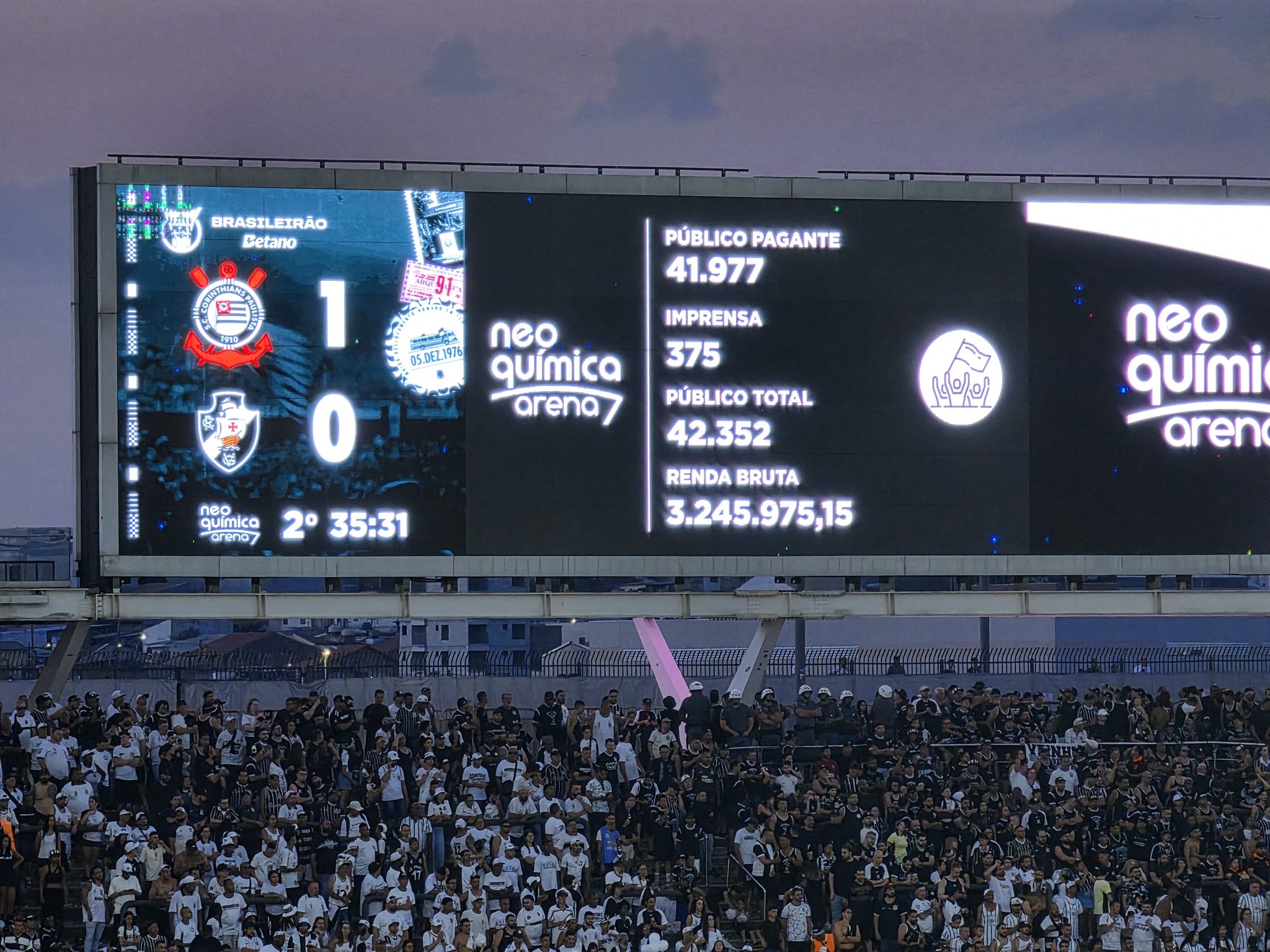 Corinthians e Vasco com público de 41.977 pagantes para R$ 3.245.975,15.