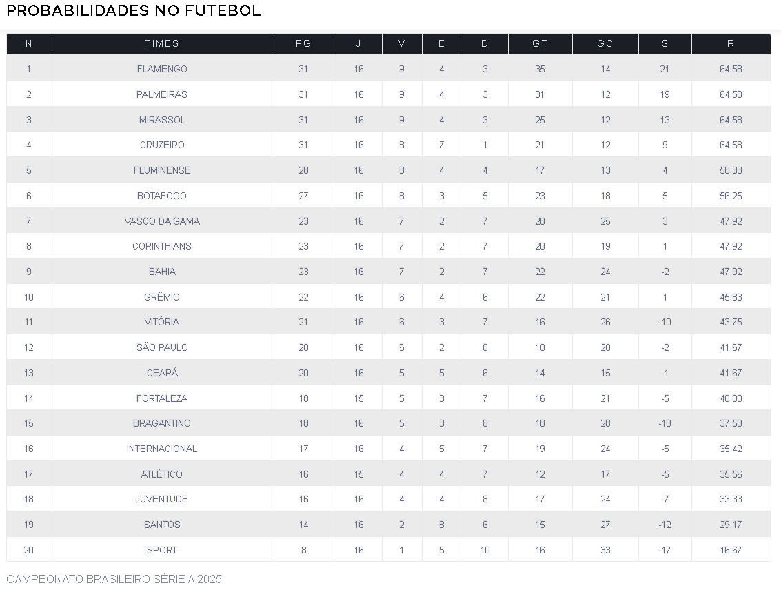 Quando vivia a melhor fase, o Vasco disputava com Flamengo, Palmeiras e Mirassol as primeiras colocações do Campeonato Brasileiro. Na última vitória, o Cruzmaltino estava em 2°, na rodada 30.