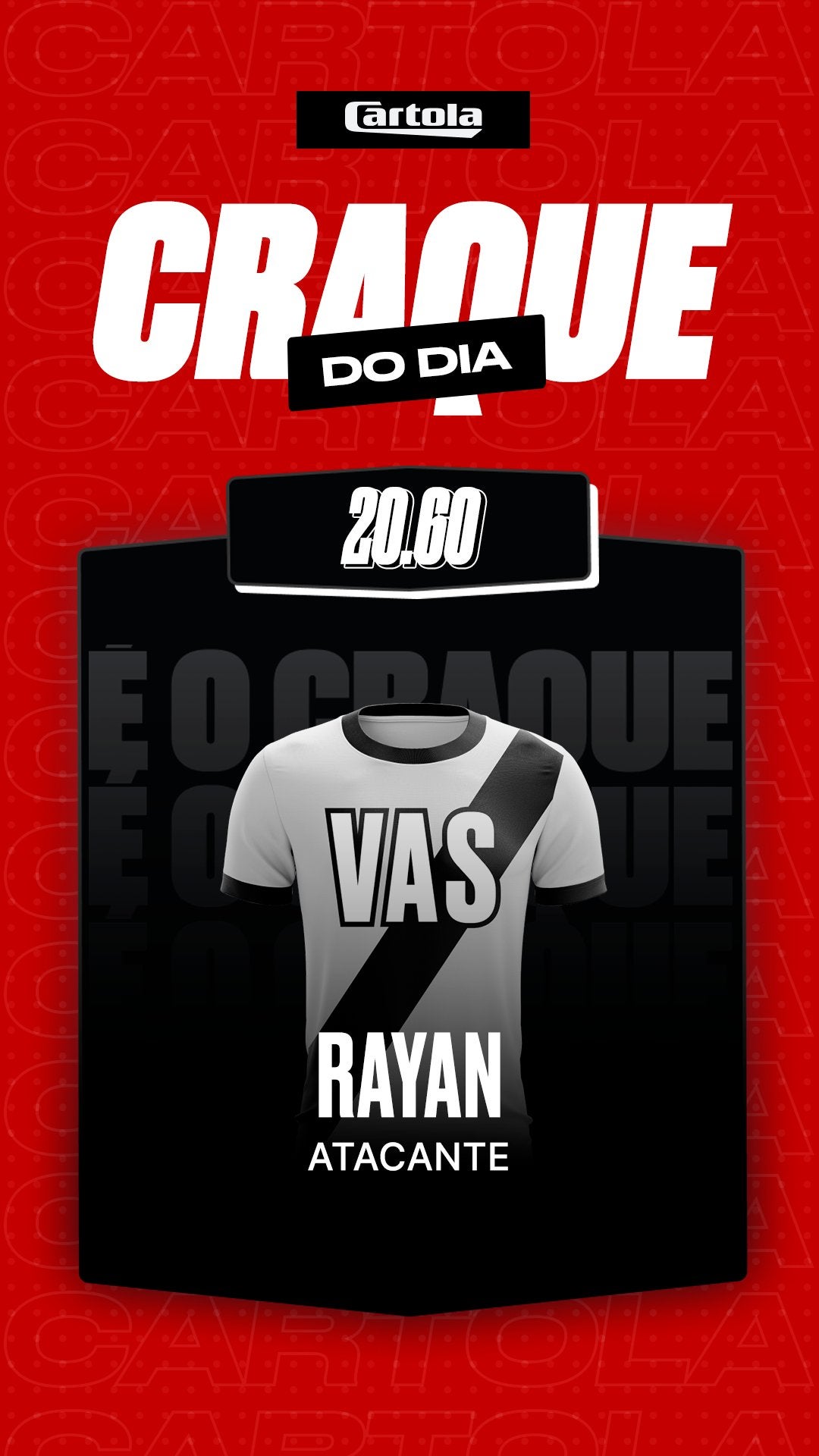 Rayan, atacante do Vasco, marcou duas vezes na virada contra o Vitória. A fera estava presente em 422.144 escalações. Tava no seu time?