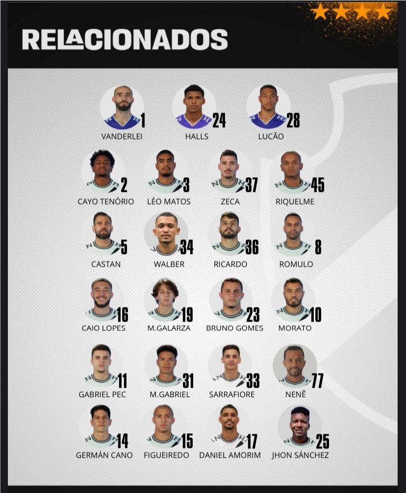 Relacionados pelo técnico Fernando Diniz para a partida contra o Confiança.