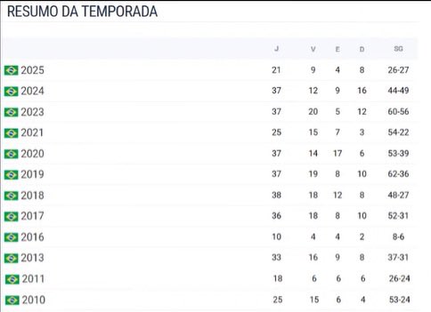 Retrospecto de Renato Gaúcho entre 2010 e 2025 no Campeonato Brasileiro.