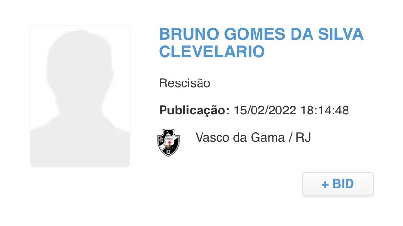 Rescisão de Bruno Gomes com o @VascodaGama foi registrada no BID:
