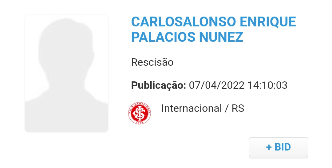 Rescisão de Carlos Palacios com o Internacional foi publicada no BID.