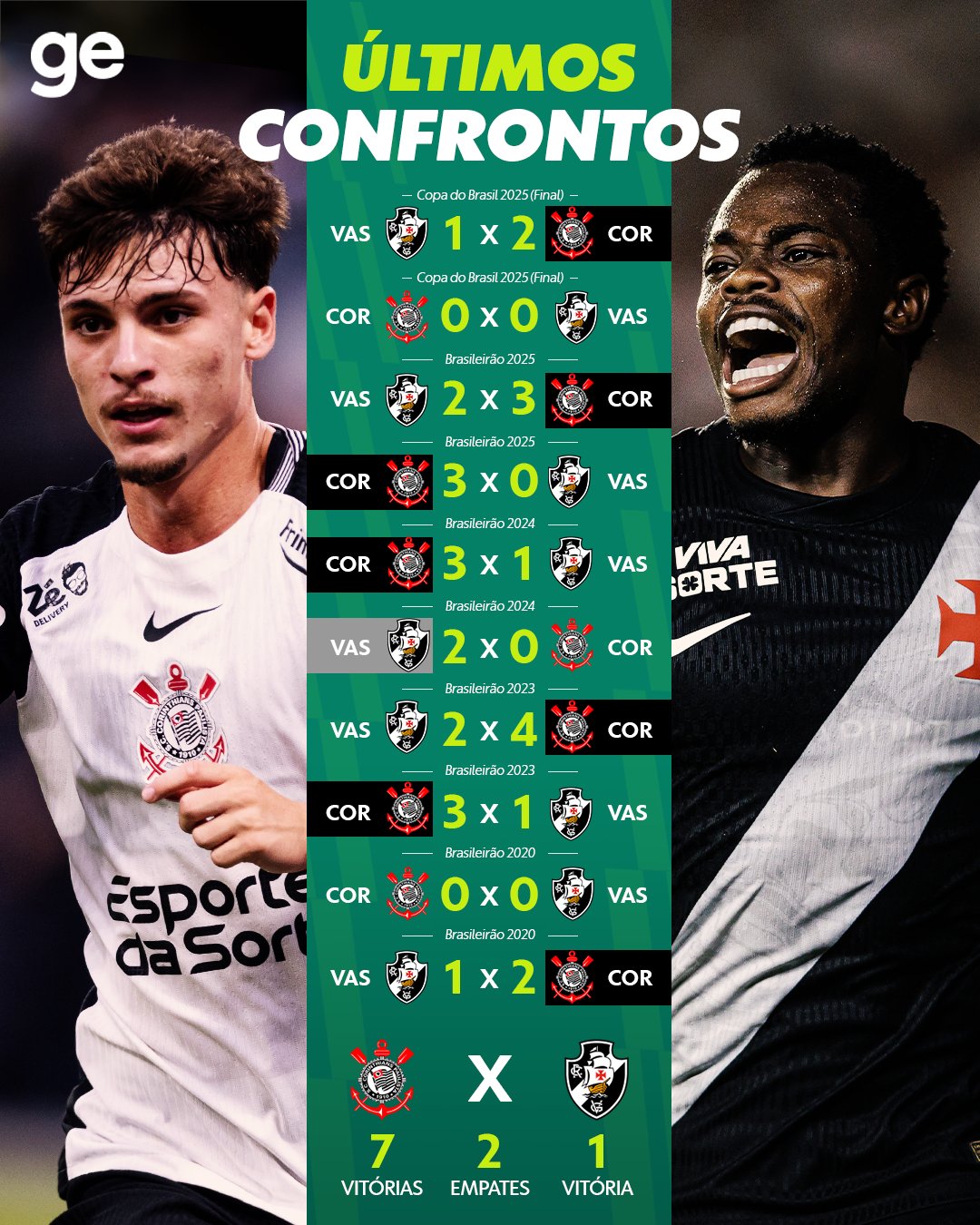 Esses foram os últimos confrontos entre Corinthians e Vasco, que se enfrentam na próxima rodada do Brasileirão. #futebol #vasco #corinthians #brasileirão #ge