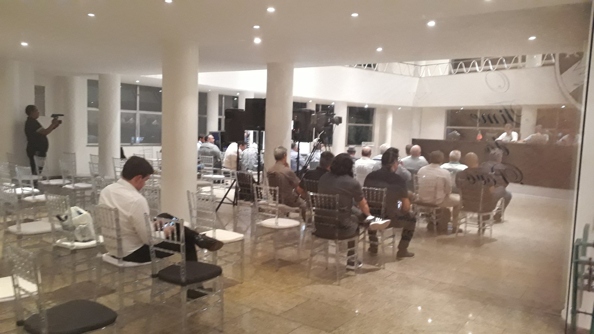 Sessão de hoje, novamente, é híbrida: presencial e online. Mais conselheiros vieram aqui na Lagoa dessa vez, em comparação com a última reunião, mas a maioria ainda está participando de forma online. (Perdão pela foto feita através de um vidro rs) #VascoENM
