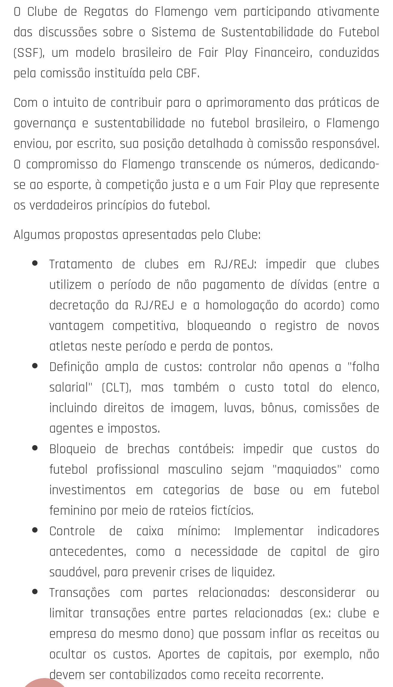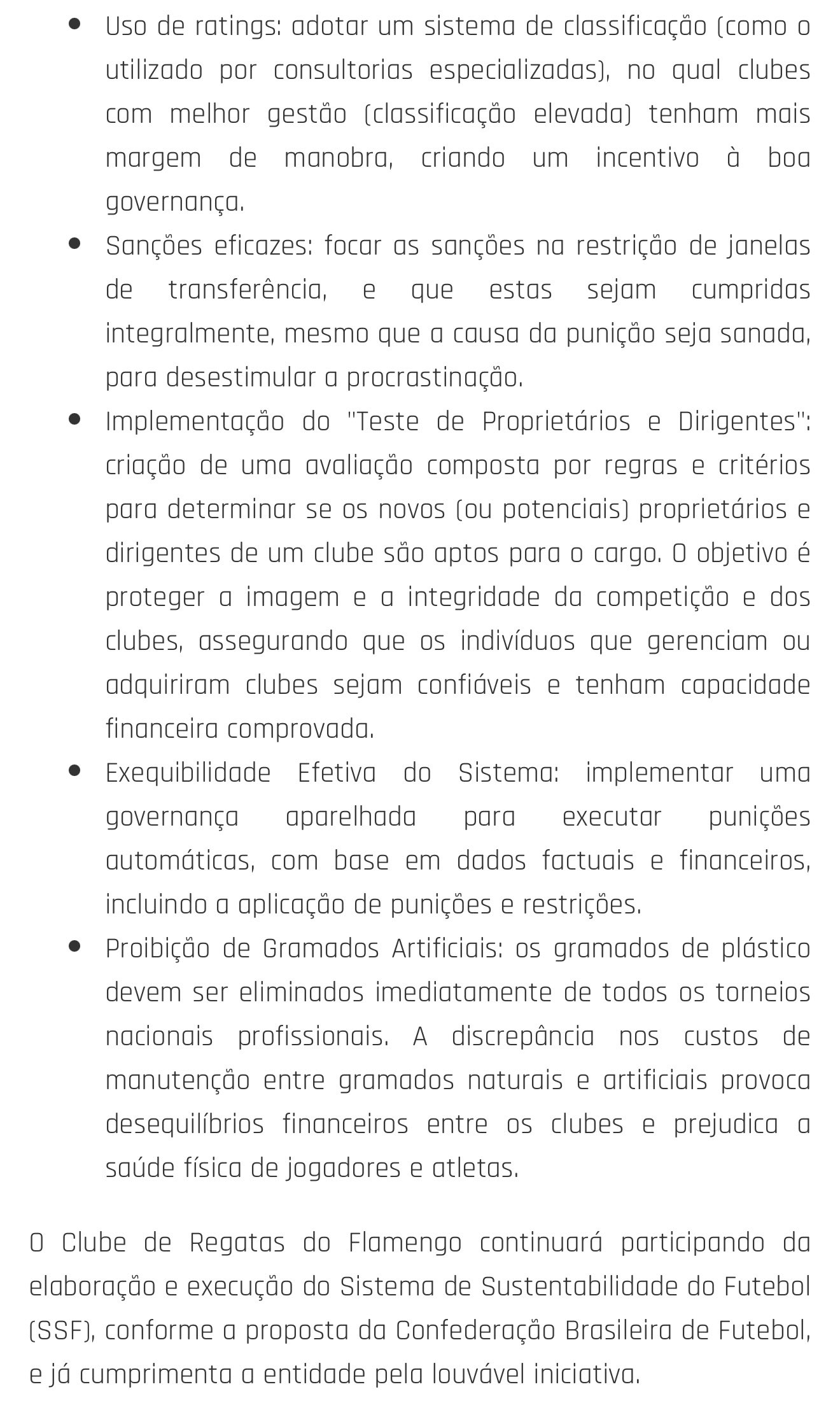⚠️ Flamengo divulga as propostas que apresentou para contribuir na criação do Fair Play Financeiro no futebol brasileiro: