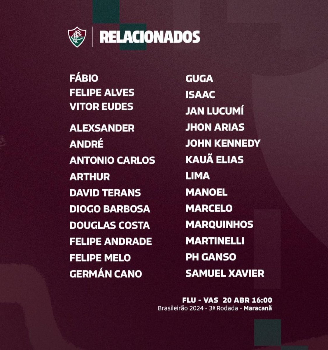 Keno fica de fora da listagem, diferente do que se noticiou durante a semana. Reprodução/Fluminense